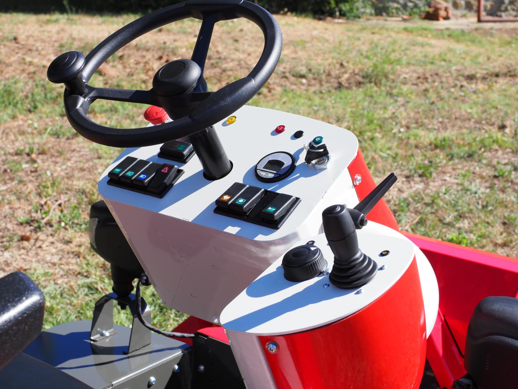 Der Geräteheberarm wird bequem über einen Joystick gesteuert. Dank des vereinheitlichten Schnellkuppeldreiecks können die Arbeitsgeräte schnell und werkzeuglos ausgewechselt werden. Eine Vielzahl passender Anbaugeräte stehen zur Verfügung. Für den Betrieb von anderen elektrischen Geräten ist am Heck eine 220V/1000Watt-Steckdose angebracht. Die Ladefläche kann mit einem Gesamtgewicht von 300 kg beladen werden.